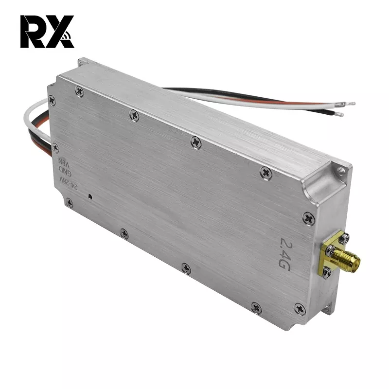 Questo modulo jammer di segnale 2.4G 50W per drone, molto venduto, con una potenza di uscita di 50 W, può generare forti segnali RF. Coprendo la gamma di frequenza 2400 - 2485 MHz, comunemente utilizzata dai droni per comunicazione, controllo, segnali remoti, trasmissione di immagini e funzioni satellitari, la sua potente uscita da 50 W consente ai segnali di disturbo di sopraffare i segnali legittimi dei droni. Di conseguenza, interrompe di fatto il normale funzionamento dei droni, impedendo loro di funzionare come previsto.