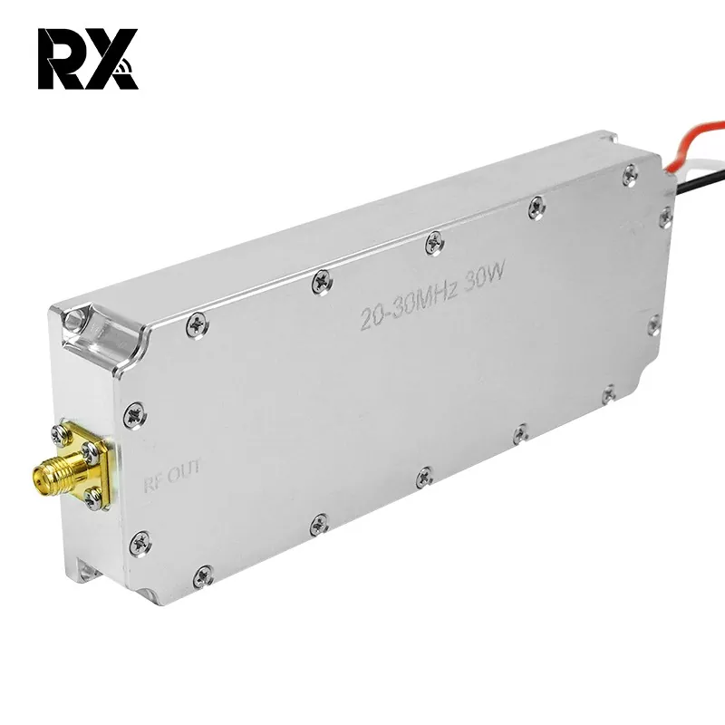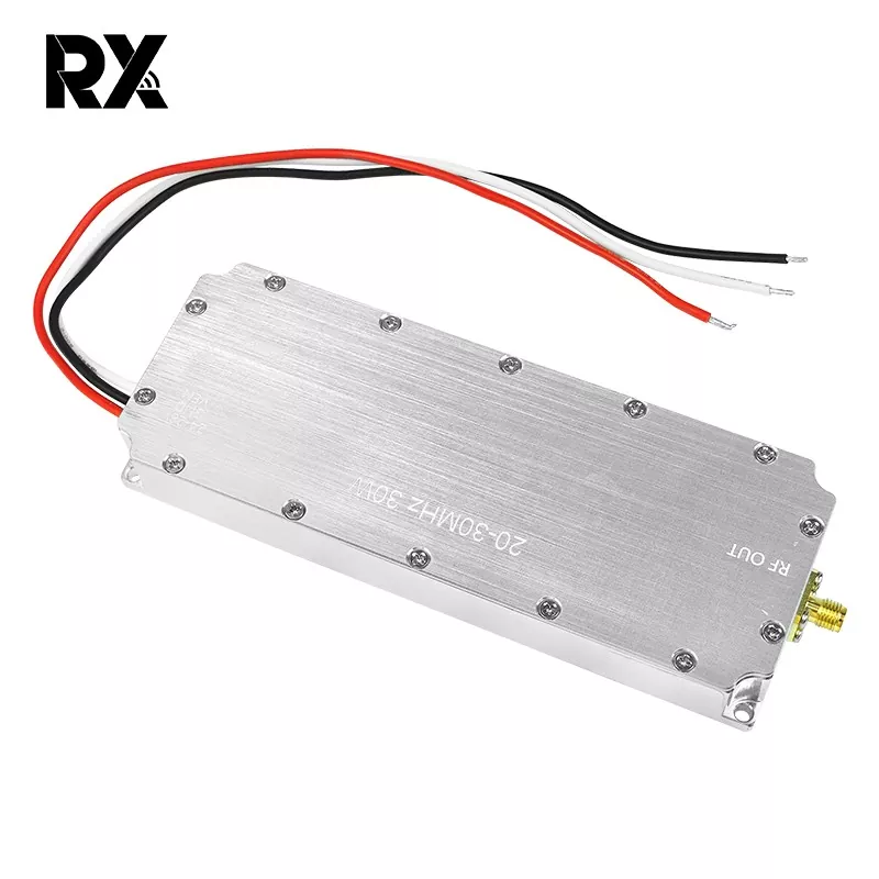 Modulo dispositivo jammer di segnale anti drone da 150 MHz 50 WQuesto nuovo modulo jammer drone con connettore SMA da 30 W da 20-30 MHz presenta un'interfaccia SMA, con una potenza di uscita di 30 W e una banda di frequenza operativa che copre 20-30 MHz. La qualità dei moduli prodotti da RX è garantita e le loro eccellenti prestazioni e il buon effetto di utilizzo li rendono apprezzati dai clienti. È specificamente progettato per il controllo dei droni in scenari specifici. Questo design innovativo non solo rende la sua struttura più adatta ai requisiti pratici di installazione, ma ottimizza anche le prestazioni di disturbo.